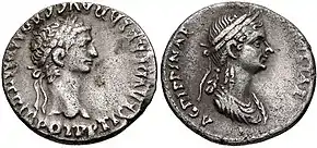 Pièces de monnaie d'Agrippine et de Claude en tant que co-dirigeants de facto de l'empire.