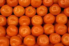 2/ オレンジ (orenji) les oranges douces, C. sinensis, qui sont toutes des variétés méditerranéennes (certains fruits sont improprement nommés orange, comme l'orange de Mie),