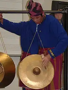 L'instrumentiste est généralement situé derrière l'agung. Il tient généralement la bride avec sa main gauche et frappe sur la bosse des gongs avec un maillet à l'aide de sa main gauche. Ces maillets appelés « balu » mesurent environ 15 centimètres.