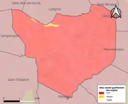 Le retrait-gonflement des sols argileux est susceptible d'engendrer des dommages importants aux bâtiments en cas d’alternance de périodes de sécheresse et de pluie. La totalité de la commune est en aléa moyen ou fort (67,5 % au niveau départemental et 48,5 % au niveau national). Sur les 345 bâtiments dénombrés sur la commune en 2019, 345 sont en aléa moyen ou fort, soit 100 %, à comparer aux 90 % au niveau départemental et 54 % au niveau national. Une cartographie de l'exposition du territoire national au retrait gonflement des sols argileux est disponible sur le site du BRGM[16],[Carte 2].