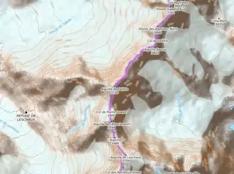 Le refuge de Leschaux se trouve à ses pieds au sud-ouest[1].