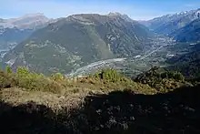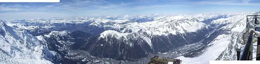On y distingue les aiguilles Rouges (face au mont Blanc) et l'Envers des aiguilles (versant orienté vers le nord et nord-ouest).