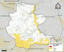 L'occupation des sols de la commune, telle qu'elle ressort de la base de données européenne d’occupation biophysique des sols Corine Land Cover (CLC), est marquée par l'importance des territoires agricoles (89,1 % en 2018), une proportion sensiblement équivalente à celle de 1990 (89,7 %). La répartition détaillée en 2018 est la suivante : prairies (36,1 %), zones agricoles hétérogènes (30 %), terres arables (23 %), zones urbanisées (6,2 %), forêts (4,6 %)[24]. L'évolution de l’occupation des sols de la commune et de ses infrastructures peut être observée sur les différentes représentations cartographiques du territoire : la carte de Cassini (XVIIIe siècle), la carte d'état-major (1820-1866) et les cartes ou photos aériennes de l'IGN pour la période actuelle (1950 à aujourd'hui)[Carte 1].