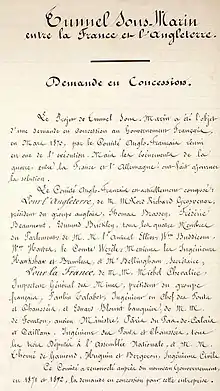 Les Britanniques, de leur côté se lancent dans l'étude d'un lien permanent avec le continent. L'ingénieur Henry Brunel et John Hawkshaw (en) s'attèlent à la tâche. Ils créent l'association franco-anglaise pour le tunnel sous la Manche qui est présidée par Richard Grosvenor pour les Anglais et par Michel Chevalier pour les Français. Thomé de Gamond en est presque évincé. Le , Napoléon III est défait à la bataille de Sedan. Il perd là un soutien important. La république succède à l'Empire. En , les Anglais réunissent des investisseurs et des ingénieurs au sein d'une société baptisée The Channel Tunnel Company Limited. Thomé de Gamond y est repris et relance les demandes de concession au nouveau gouvernement français en 1871 et 1872. Le , un comité permanent est désigné en France pour superviser les travaux préliminaires. La présidence de ce comité est assurée par Michel Chevalier qui le maintient à l'écart des débats. Les relations se détériorent entre les deux hommes. Le , l'Assemblée nationale par l'entremise du Maréchal Mac-Mahon et du Ministre des travaux publics, Eugène Caillaux ratifie une convention d'exploitation du tunnel pour une durée de 99 ans. Michel Chevalier, avec des fonds issus de la famille Rothschild et de la Compagnie des chemins de fer du Nord monte la société et assume la présidence de la société qui bénéficiera de cette concession. Définitivement évincé du projet, Thomé de Gamond adresse au comité une lettre aux accents pathétiques qui émeuvent certains de ses membres, au point qu'ils mettent sur pied une commission pour statuer sur le « cas Thomé ». D'atermoiements en reports de discussion, ils aboutissent à une résolution, en , lui octroyant une rente annuelle de 6 000 francs à partager à sa mort, pour moitié pour son épouse, Marie-Aline de Gamond et pour moitié pour sa fille, Gabrielle[2].