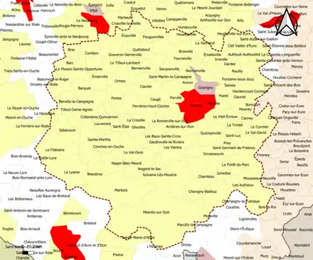 Localisation de l'aire d'attraction d'Évreux dans le département de l'Eure. | |