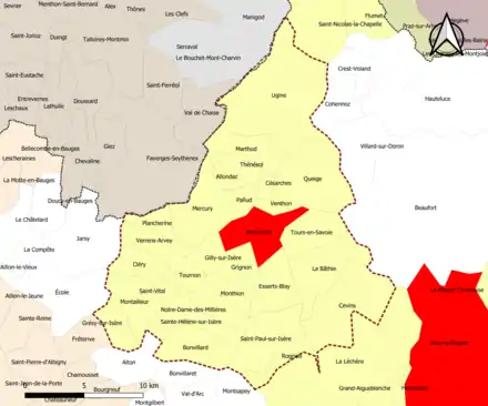 | Monthion | 73170 | Savoie | commune de la couronne | 6,36 | 525 (2021) | 83 | |