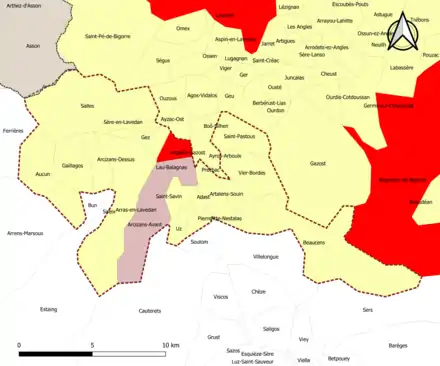 | Arras-en-Lavedan | 65029 | Hautes-Pyrénées | commune de la couronne | 24,66 | 495 (2021) | 20 | |