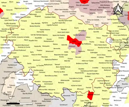 Localisation de l'aire d'attraction d'Arras dans le département du Pas-de-Calais. | |