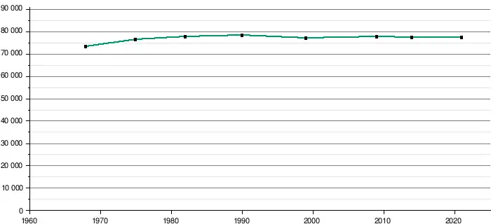 Cette aire est catégorisée dans les aires de 50 000 à moins de 200 000 habitants[2], une catégorie qui regroupe 18,4 % de la population au niveau national[5],[6].