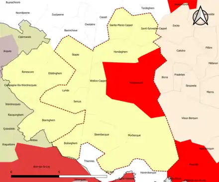 | Sainte-Marie-Cappel | 59536 | Nord | commune de la couronne | 7,56 | 857 (2021) | 113 | |