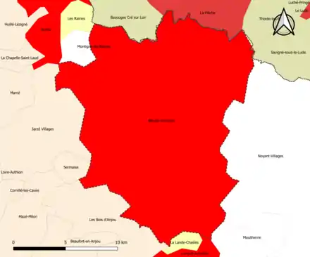 Localisation de l'aire d'attraction de Baugé-en-Anjou dans le département de Maine-et-Loire. | |