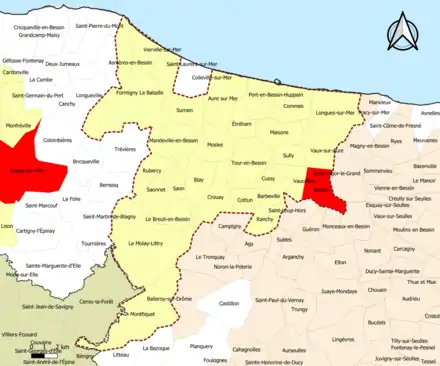 Localisation de l'aire d'attraction de Bayeux dans le département du Calvados. | |