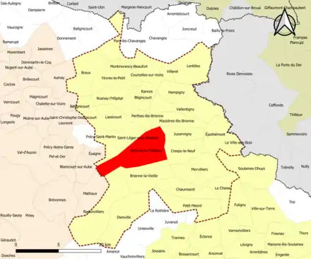 Localisation de l'aire d'attraction de Brienne-le-Château dans le département de l'Aube. | |
