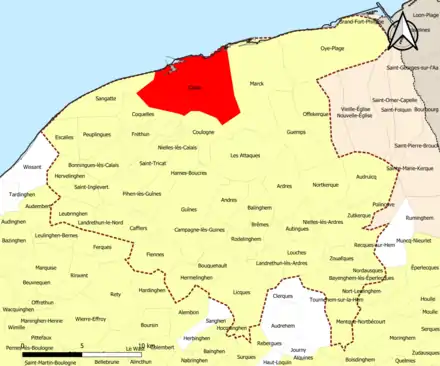 Localisation de l'aire d'attraction de Calais dans le département du Pas-de-Calais. | |