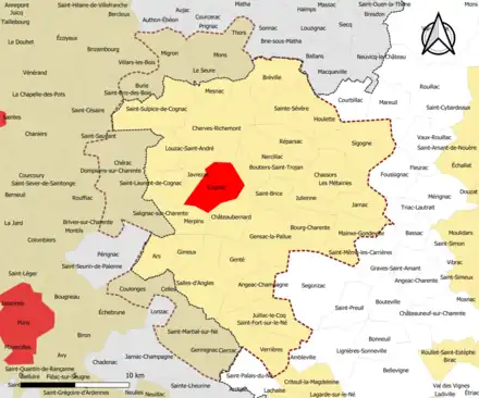 | Nombre de communes | 45 soit 32 (Charente) + 13 (Charente-Maritime) |