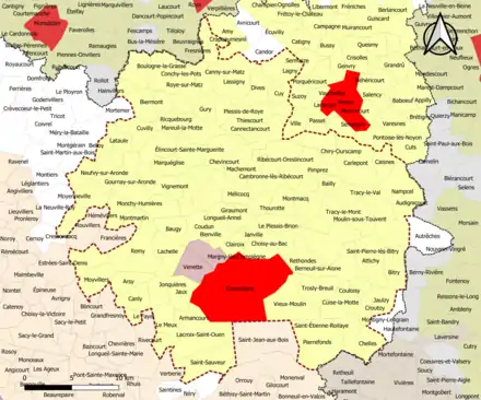 Localisation de l'aire d'attraction de Compiègne dans le département de l'Oise. | |
