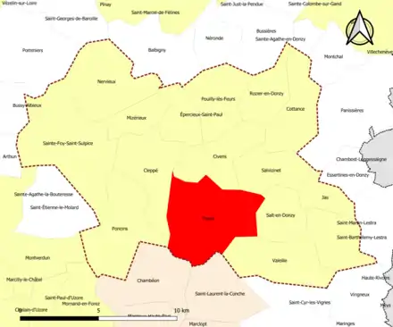 | Nervieux | 42155 | Loire | commune de la couronne | 19,44 | 1 016 (2021) | 52 | |