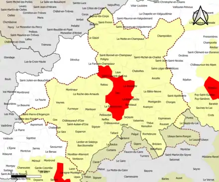 | Nombre de communes | 73 soit 66 (Hautes-Alpes) + 7 (Alpes-de-Haute-Provence) |