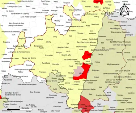 | Nombre de communes | 105 soit 71 (Saône-et-Loire) + 31 (Ain) + 3 (Rhône) |