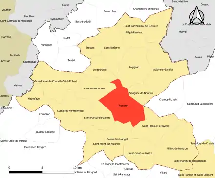 Localisation de l'aire d'attraction de Nontron dans le département de la Dordogne | |