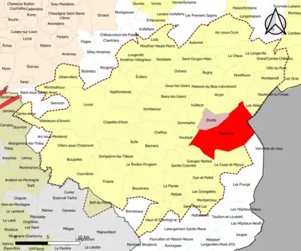 Localisation de l'aire d'attraction de Pontarlier dans le département du Doubs. | |