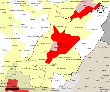 Localisation de l'aire d'attraction de Saint-Claude dans le département du Jura. | |