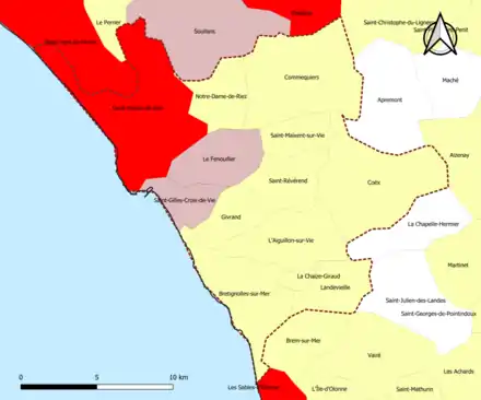 | Landevieille | 85120 | Vendée | commune de la couronne | 13,57 | 1 503 (2021) | 111 | |