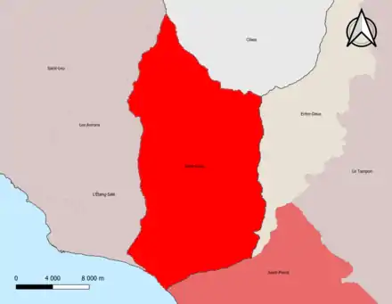 Localisation de l'aire d'attraction de Saint-Louis dans le département de La Réunion. | |