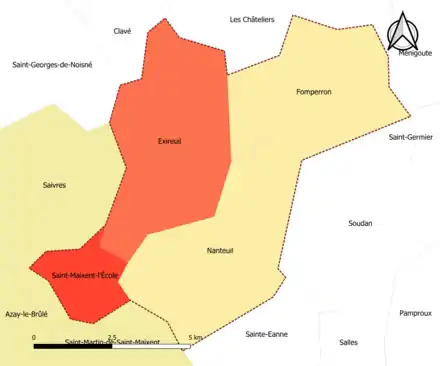 | Exireuil | 79114 | Deux-Sèvres | commune du pôle principal | 21,06 | 1 567 (2021) | 74 | |