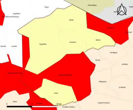 | Eyguières | 13035 | Bouches-du-Rhône | commune de la couronne | 68,75 | 6 887 (2021) | 100 | |