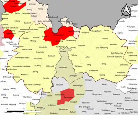 | Nombre de communes | 48 soit 45 (Moselle) + 3 (Bas-Rhin) |