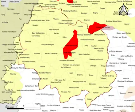 | Communes de la couronne | Côte-d'Or | 53 | Aisy-sous-Thil, Athie, Bard-lès-Époisses, Braux, Brianny, Charigny, Chassey, Clamerey, Corrombles, Corsaint, Courcelles-Frémoy, Courcelles-lès-Semur, Dompierre-en-Morvan, Époisses, Fain-lès-Moutiers, Le Val-Larrey, Forléans, Genay, Jeux-lès-Bard, Juilly, Lantilly, Magny-la-Ville, Marcigny-sous-Thil, Marcilly-et-Dracy, Marigny-le-Cahouët, Massingy-lès-Semur, Millery, Montberthault, Montigny-Saint-Barthélemy, Montigny-sur-Armançon, Moutiers-Saint-Jean, Mussy-la-Fosse, Nan-sous-Thil, Noidan, Normier, Pont-et-Massène, Pouillenay, Précy-sous-Thil, Roilly, Sainte-Colombe-en-Auxois, Saint-Euphrône, Saint-Thibault, Senailly, Souhey, Thoste, Torcy-et-Pouligny, Velogny, Vic-de-Chassenay, Vic-sous-Thil, Villaines-les-Prévôtes, Villars-et-Villenotte, Villeneuve-sous-Charigny, Viserny. |