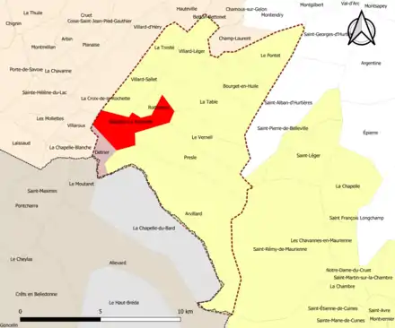 | Bourget-en-Huile | 73052 | Savoie | commune de la couronne | 6,79 | 145 (2021) | 21 | |