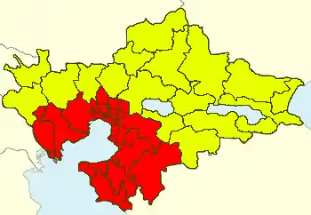 Cependant, avec l'étalement urbain, davantage de municipalités sont interconnectées avec la région en croissance. La région comprend désormais toutes les zones traditionnellement associées et citées ci-dessus, ainsi que les banlieues nouvellement émergentes au nord-ouest, au nord, à l'est et au sud-est de la ville. De plus, les zones industrielles à l'ouest sont de plus en plus liées au tissu de la ville à mesure que de nouvelles infrastructures empiètent sur ces zones.