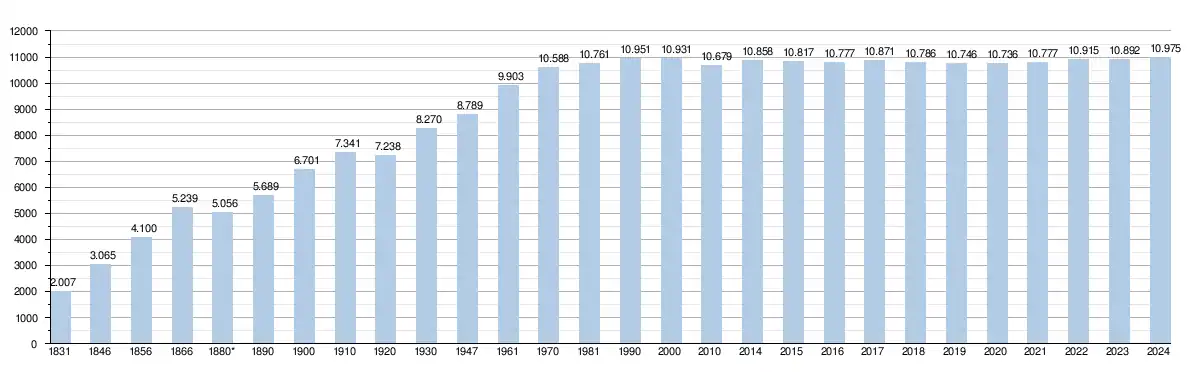 - Source: DGS , de 1831 à 1981=recensements population; à partir de 1990 = nombre d'habitants chaque 1 janvier