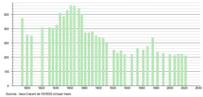 En 2021, la commune comptait 211 habitants[Note 3], en diminution de 7,46 % par rapport à 2015 (Côte-d'Or : +0,44 %, France hors Mayotte : +1,84 %).