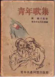 Couverture de la première collection de Chansons pur la jeunesse éditée par Akiko Seki (Tokyo, Typographie de la section culturelle de la Ligue de la jeunesse communiste du Japon, 1948)