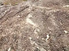Élèves en excursion au sommet de la roche. | ||||