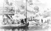 Lorsque la région retrouva la paix, que la mise en valeur des terres fut engagée, la culture du coton se répandit le long de la rivière et dans les vallées de ses affluents. Le coton était le sang de l'État de l'Alabama et le cours d'eau l'artère principale par laquelle la plante textile transitait. Jusqu'à l'arrivée du bateau à vapeur au cours des années 1820, le commerce s'effectuait exclusivement vers l'aval, mais cette innovation technique permit une navigation autant vers l'embouchure que vers l'amont. Les principales villes s'édifièrent de part et d'autre de la rivière où flottaient les trains de bois et naviguaient les steamboats transportant passagers et balles de coton. Durant cette période qui s'étale de 1825 à 1860 environ[10], plus de 200 atterrissages jalonnaient les rives (1 tous les 2,5 km !), permettant de charger ou décharger, coton, bois de chauffe, marchandises venues de toute l'Union, embarquer ou débarquer négociants, planteurs, travailleurs, aventuriers ou simples habitants. Cet âge d'or de l'Alabama fut aussi celui des steamboats destinés à satisfaire l'appétit de plaisirs des autochtones et qualifiés de palais flottants[11]. L'arrivée du chemin de fer, puis la guerre de Sécession mirent un terme à la splendeur de l'Alabama.