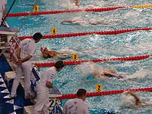 | 4 × 100 m nage libre | Argent 3 min 8 s 32 - RE | Or 3 min 9 s 93[Note 1] |