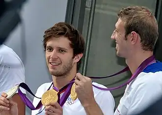 Deux mois plus tard, lors des Jeux olympiques de Londres (Grande-Bretagne), Alain Bernard ne nage que les séries du relais 4 × 100 mètres nage libre[86], le Niçois Clément Lefert lui étant préféré à l'issue des séries[87]. Il assiste au bord des larmes en tribunes au titre olympique de ses coéquipiers, devenant médaillé d'or au même titre que Jérémy Stravius qui nageait aussi les séries, Amaury Leveaux, Fabien Gilot, Clément Lefert et Yannick Agnel. Il conclut donc sa carrière par un deuxième titre olympique[88].