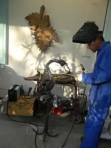 Le matériau de prédilection du sculpteur est le métal : acier, inox, fer, cuivre. Certaines œuvres atteignent plusieurs mètres[11]. L'artiste sculpte également le bois, la pierre, le sable et le verre. Il peut combiner les matériaux[12].