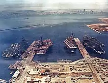 La ville vivait aussi de sa base aéronavale, Naval Air Station Alameda, fondée en 1940 et fermée définitivement en 1997. Il en reste aujourd'hui un musée, où est exposé le porte-avions Hornet. La série télévisée Mythbusters y a réalisé de nombreuses expériences en profitant de l'espace dégagé qu'offre la base.