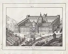 Gravure ancienne de l'Albergo dei Poveri de Gênes.