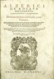 Dictionarium iuris tam civilis quam canonici, Venise, 1581.