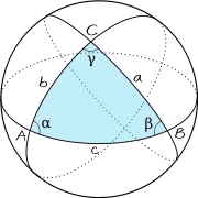 Explicitement, si , etc. désignent les angles du polygone sphérique (convexe) et n leur nombre, l'aire du polygone est donnée par[58],[Note 19] :