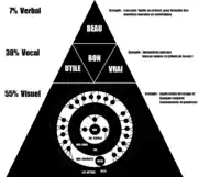 « Appréciation totale = 7 % d’appréciation verbale + 38 % d’appréciation vocale + 55 % d’appréciation faciale. Veuillez noter que cette équation et les autres équations concernant l’importance relative d’un message verbal et d’un message non verbal, viennent d’expériences concernant la communication de sentiments et d’états d‘esprit. À moins qu’une personne ne parle de ses sentiments ou de ses états d‘esprits, ces équations ne sont pas applicables. »