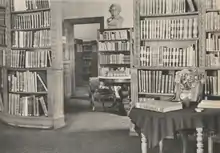 De l’été à , Albert Schmitt travailla à l’identification des documents et objets relatifs à Goethe durant son séjour en Alsace ainsi qu’à l’établissement d’un budget annuel. Un bilan rétrospectif de son activité fut fourni par différents organes de la presse régionale et allemande en et [35]. On y apprend tout d’abord la toute récente inauguration de la Maison de Goethe au début du printemps. Son administrateur y avait réuni environ 200 000 volumes auxquels s’étaient ajoutés les 6 000 œuvres et documents de la collection dite « Ogeleit », acquises pour l’institution. En outre fut réitéré le projet d’acquisition de la maison au 36 rue du Vieux-Marché-aux-poissons, destinée à recevoir les collections muséales de l’institution tandis que la bibliothèque et les documents d’archives devaient demeurer au 43 de l’Allée de la Robertsau[alpha 17].