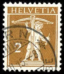 En 1907, le peintre crée le célèbre "Tellenbüebli", le timbre postal de 25 centimes représentant le fils de Guillaume Tell.