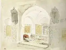 - « Le mot européen « alcôve » dérive du mot arabe al-qubba (coupole) قبة - طاقة qui, par extension, désigne une pièce au plan en T, déjà connu dans l’Antiquité et très diffusée dans les maisons maghrébines »Qantara